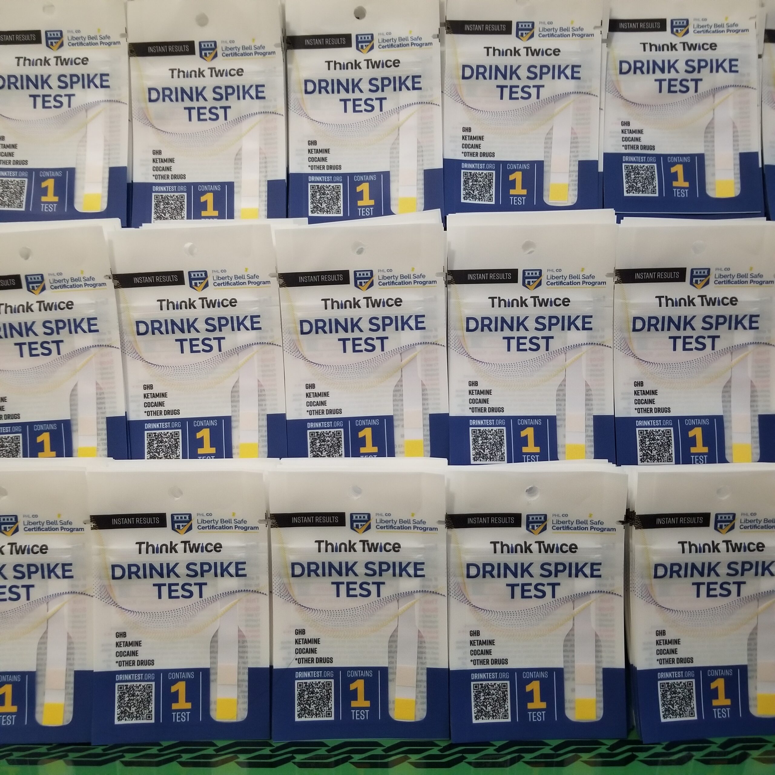 “Don’t get roofied! Drink spiking drug test kits available here. Ask a staff member for details.”